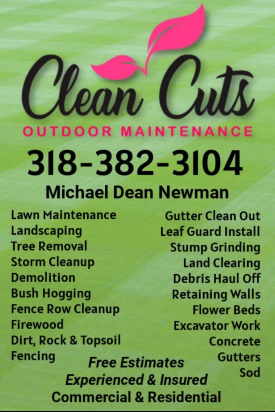 DONATED BY MICHAEL NEWMAN WITH CLEAN CUTS OUTDOOR MAINTENANCE, LLC
